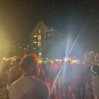 Once all of the races were done and the final night wrapped up, some of the medal ceremony volunteers went onto Hayward and took some fun pictures! Then, we decided to drop by the after party hosted by World Athletics in the Athlete’s Village which just so happened to be on my freshman dorm’s lawn. After showing up in our uniform (collared polo purple tee and sweatpants), we quickly realized that was not the vibe. Because most of us did not live too far away, we went to change into attire that was more *dance* friendly.